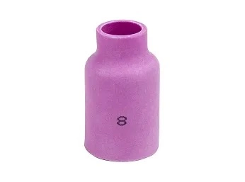 Газовая линза (газораспределительное сопло) №8 предназначена для использования с горелками TIG серий 17, 18 и 26. Диаметр выходного отверстия — 12,5 мм. В отличие от стандартных керамических сопел, газовая линза оснащена мелкоячеистой сеткой или пористой вставкой, которая преобразует турбулентный поток газа в ламинарный (равномерный). Это обеспечивает более стабильную и надежную защиту сварочной ванны, что особенно важно при сварке нержавеющей стали, титана и других ответственных материалов.Преимущества: