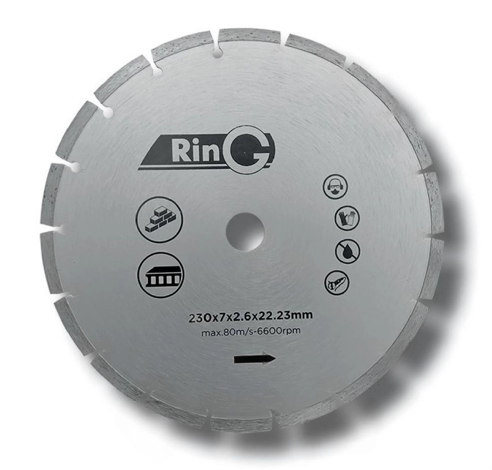 Универсальный алмазный круг со спечеными сегментами для большинства строительных материалов — бетонов, кирпича, брусчатки, шлакоблоков, дорожных бордюров, цементно-песчаной черепицы.Применяется на ручных УШМ для сухой резки.